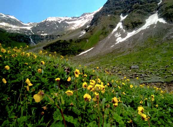 Buran Pass at 4724m -(15500ft)  served as a pastoral way between Pabbar Valley of Shimla district to Sangla Valley of Kinnaur district. Trek involves the crossing of Buran Ghati (15500 ft climb) which is a blend of lush green deodar, pine forests.Not only that, but it offers spectacular views of snow-clad peaks, watersheds, brooks, waterfalls, sprawling green meadows besides quaint villages with sparse population, and lakes. The treks that starts from Janglik near Chirgaon in Shimla, crosses Bhuran Ghatti and ends at Barua village and ranges between easy to challenging levels.