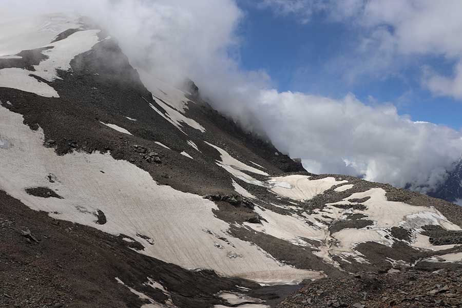 Pin-Bhabha pass at 17450 ft above sea level is one of the most interesting treks in Spiti- Kinnaur region.  Starting from the thick forest and meadows in Kinnaur, it ends in the barren landscape and stark desolateness of Spiti valley crossing the high passes of Bhaba and Pin. In fact, the people of Pin Valley and Kinnaur have been using this route for centuries for trade. Indeed, this trek is very popular with shepherds in the region. The trek begins at Kafnoo in Kinnaur and crosses over the Pin Bhaba pass at 4865 meters, and ends at Mudh in Spiti.